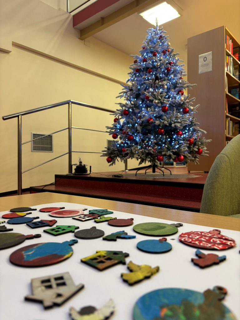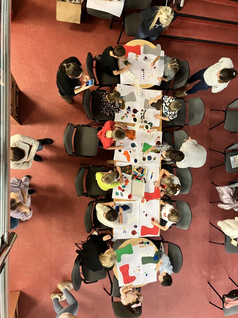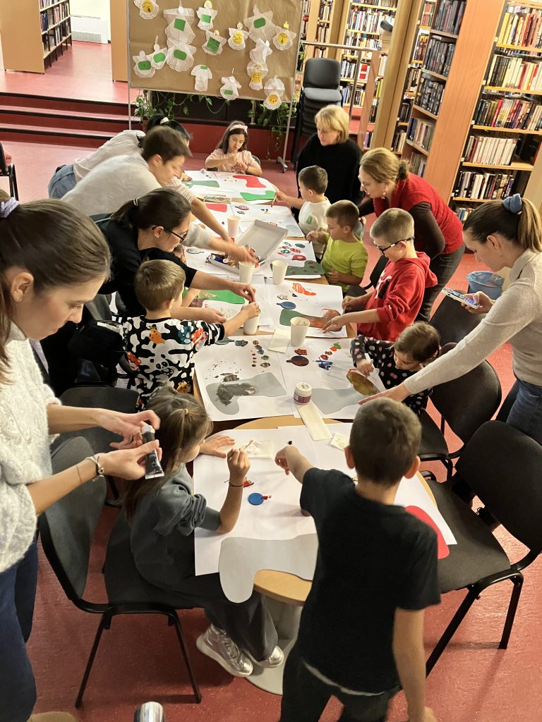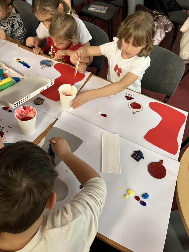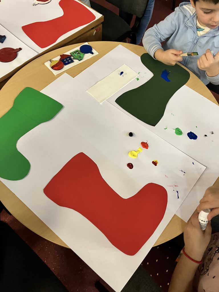 Nakon pričaonice, uslijedila je božićna radionica. Djeca jako vole Božić i raduje ih uzbuđenje koje donosi! Stoga, Knjižnica ističe važnost pričaonica i tematskih radionica na temu Božića jer se božićne pričaonice i radionice odvijaju u zajedničkom i kreativnom duhu te u prijateljskom i toplom okruženju djece i roditelja.