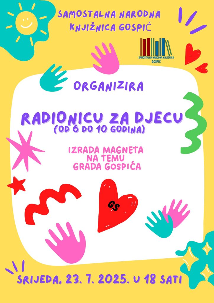 📍 Samostalna narodna knjižnica Gospić organizira kreativnu radionicu za djecu od 6 do 10 godina, gdje ćemo izrađivati magnete na temu grada Gospića! 🧲❤️